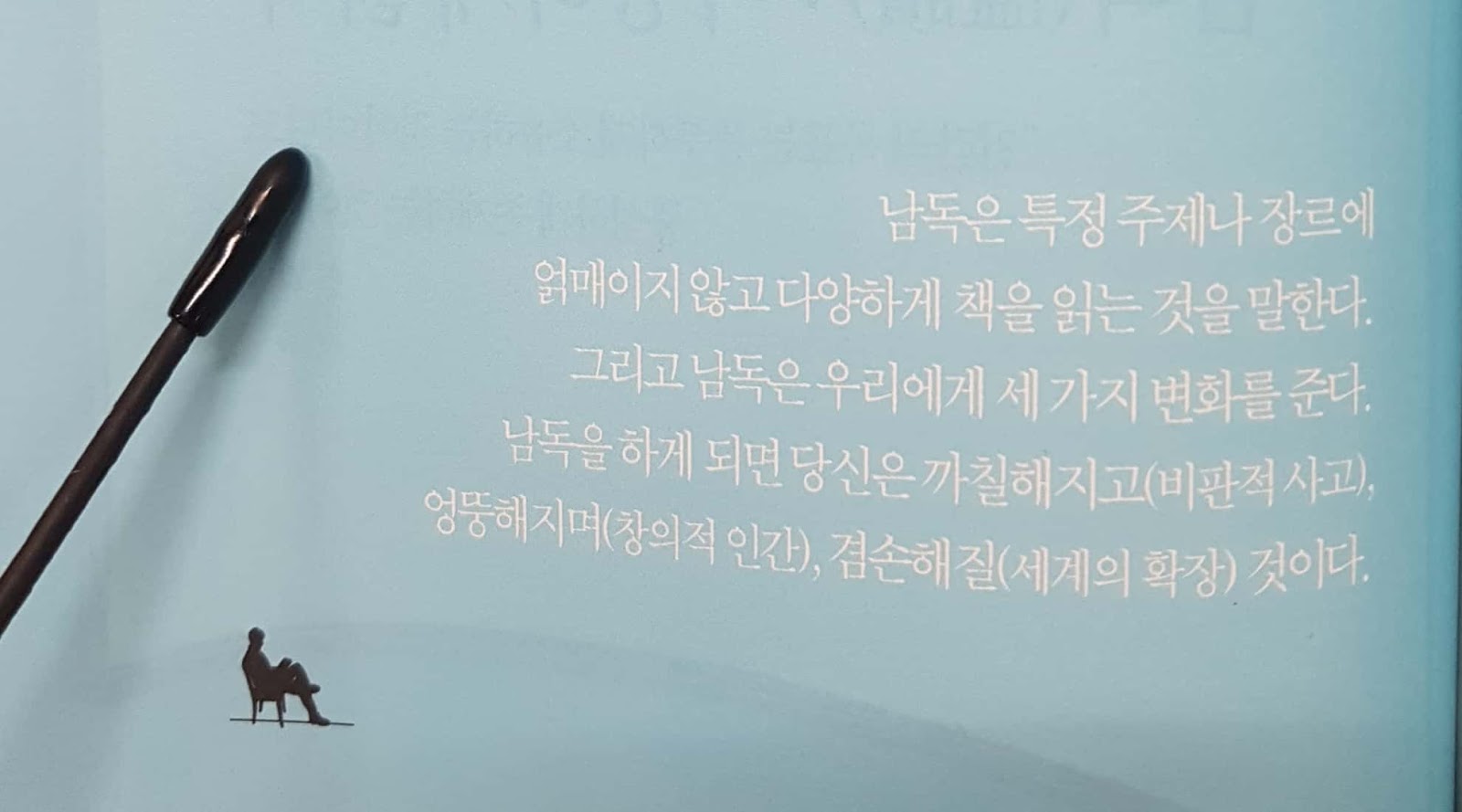 더군다나 고영성 작가 스스로가 책을 수십년 안 읽다가 다독가가 된 사람이기 때문에 그 의미가 크다.