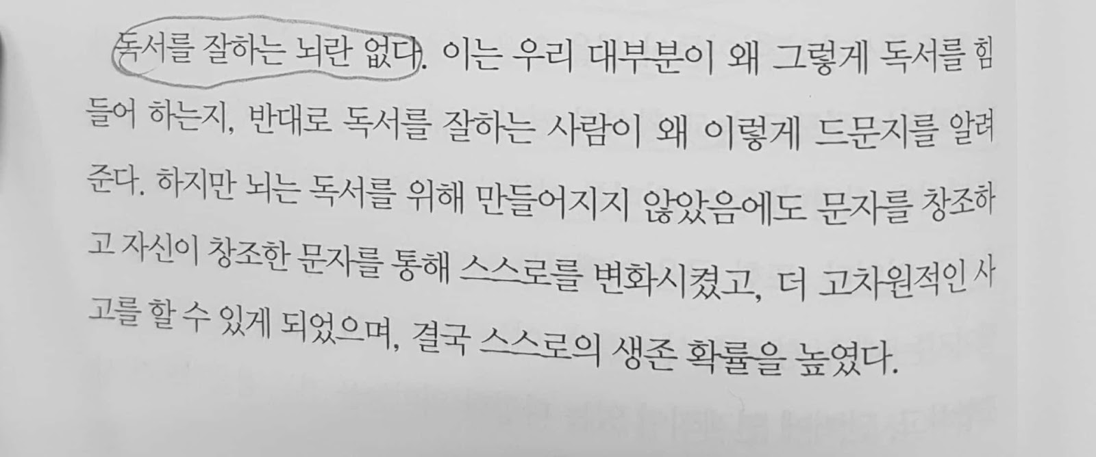 그래서 인간의 뇌는 독서에 최적화되어 있지 않은 상태로 태어난다.